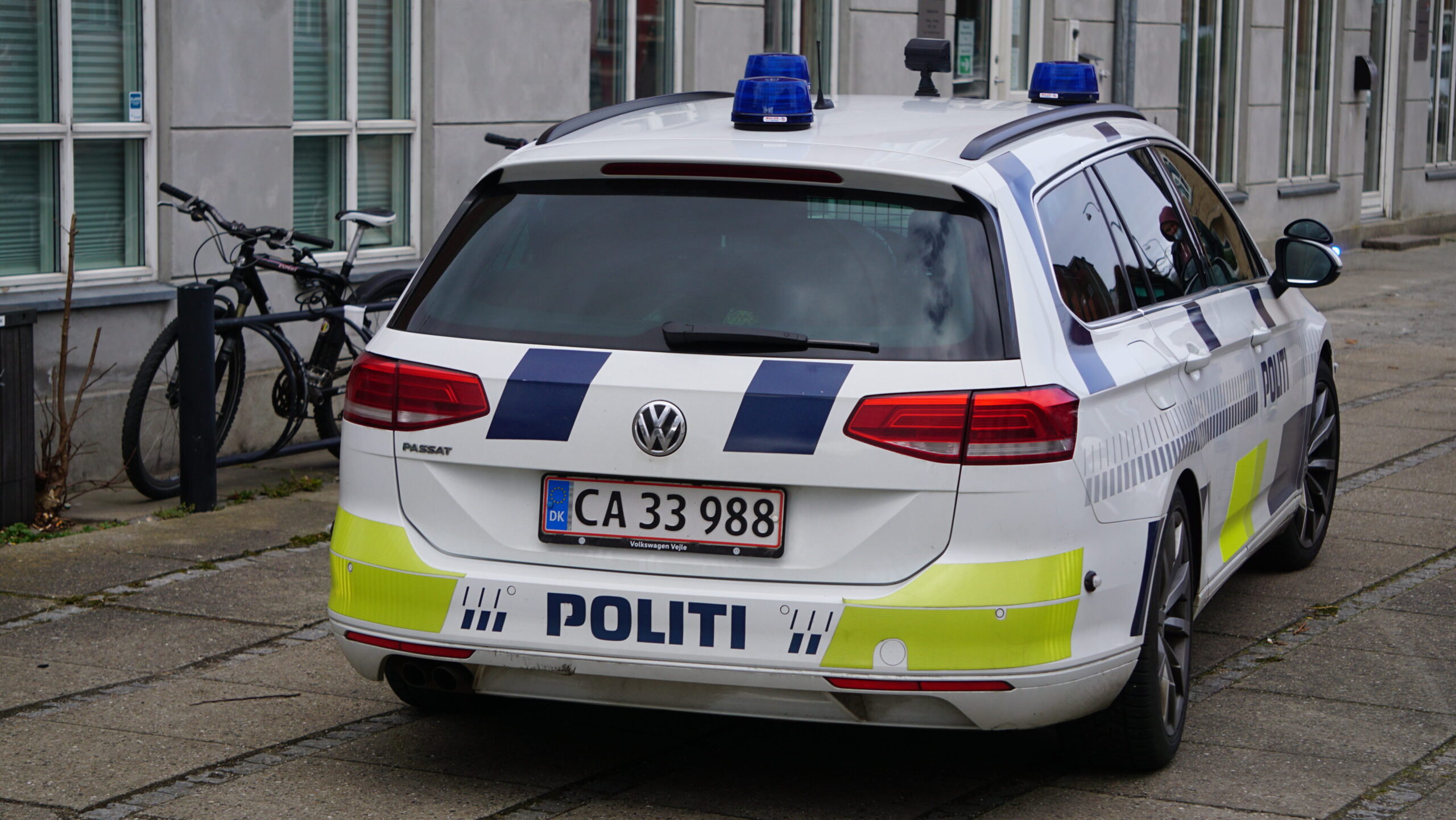 Politibil i Vendersgade d. 8. april 2021.